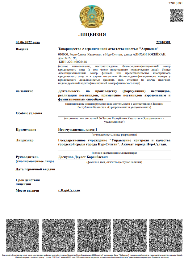 Сегодня Агриолан — одна из ведущих компаний на казахстанском рынке сельского хозяйства, специализирующаяся на поставке современных химических средств защиты растений, а также предоставлении комплексных решений для аграрного сектора. За годы работы мы зарекомендовали себя как надёжный партнёр фермерских хозяйств, агрохолдингов и дистрибьюторов.